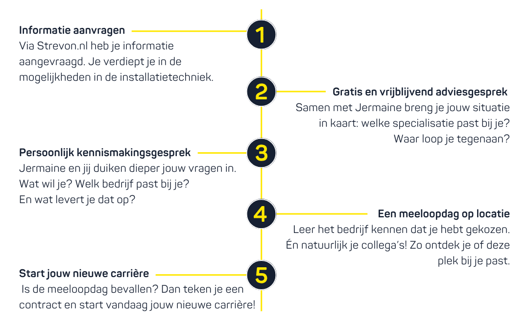 Ben je nieuwsgierig of het Strevon-traject bij jou past? Wil je alvast een kijkje nemen in de wereld van de installatietechniek? Lees ons artikel: Hoe ziet een werkdag eruit? Bij Strevon draait het om kansen creëren. Twijfel je nog of weet je het zeker? Wij kijken samen naar jouw mogelijkheden in de techniek.