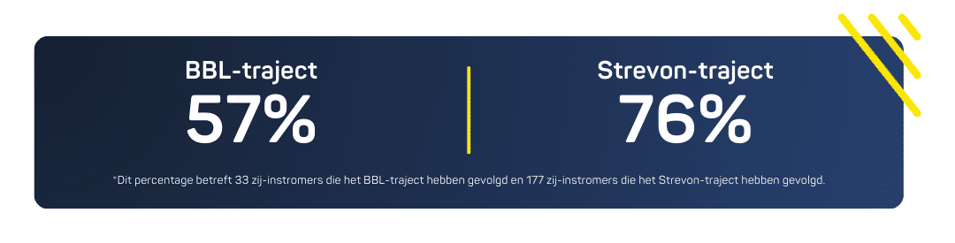 Het Strevon-traject is speciaal ontworpen voor zij-instromers tussen de 25 en 45 jaar. Deze mensen hebben vaak al een mbo-diploma op zak en brengen waardevolle werk- en levenservaring mee. Ze zijn sociaal sterker ontwikkeld dan de gemiddelde BBL-leerling, waardoor een BBL-traject niet altijd goed aansluit op hun behoeften. Daarom werken we samen met opleiders zoals Vakwijs, Studium en ROVC, die bewezen expertise hebben in het opleiden van zij-instromers. Waar BBL zich vooral richt op jongeren, focussen wij ons op volwassenen die klaar zijn voor een nieuwe stap in hun carrière.