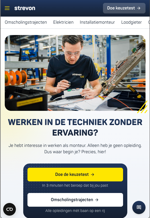 Wij benutten onze website, strevon.nl, als platform voor potentiële zij-instromers. Hier bieden we meer dan 100 informatieve artikelen en videocontent die hen stap voor stap begeleiden naar een nieuwe carrière. Onze omscholingstrajecten brengen we continu onder de aandacht via gerichte campagnes op sociale media zoals Instagram, Facebook, Google en TikTok. Daarnaast blijven we in contact via nieuwsbrieven per e-mail en WhatsApp.